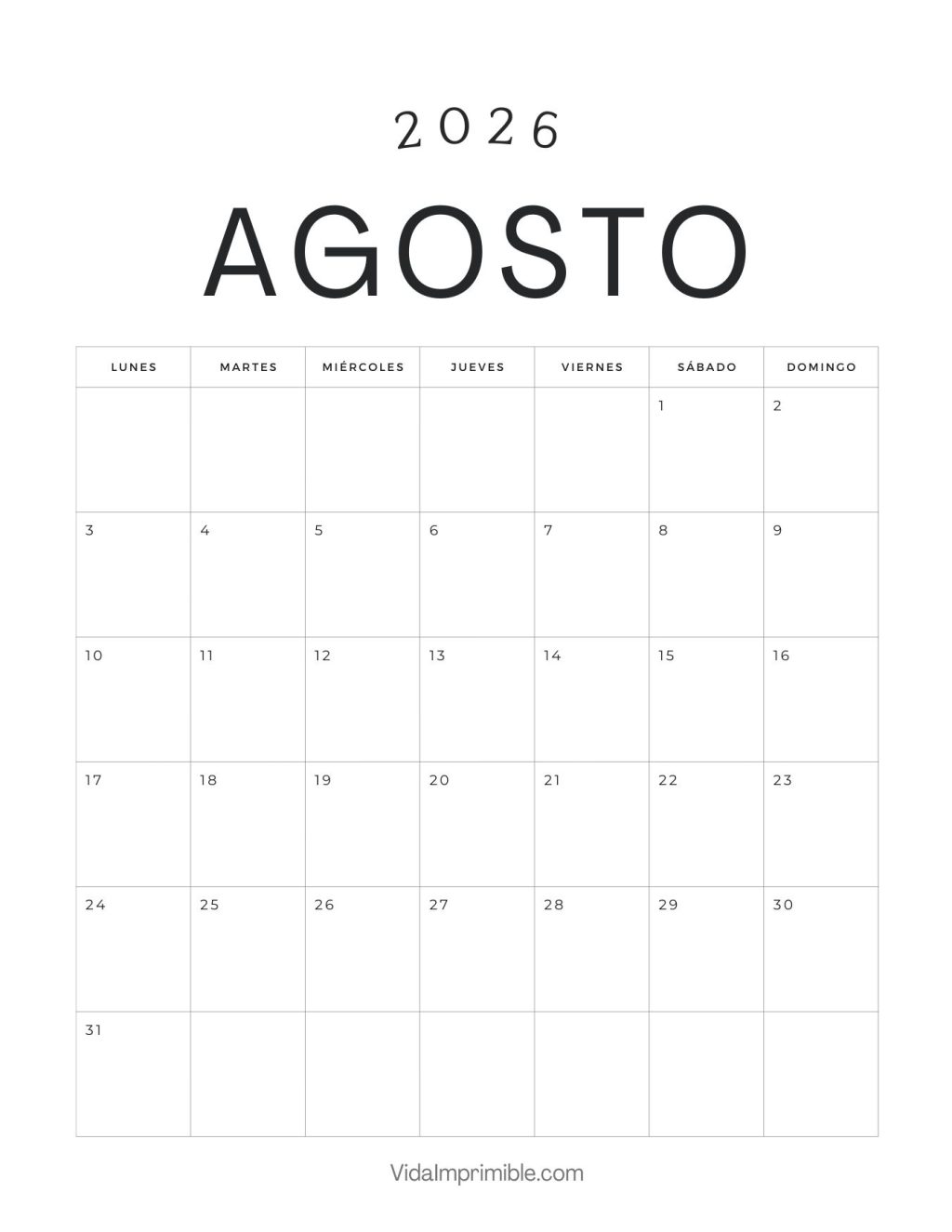 Estos calendarios están diseñados con un enfoque minimalista, lo que los hace ideales para cualquier tipo de organización personal o profesional. Con un diseño vertical, encontrarás espacio suficiente para anotar tus citas, tareas y recordatorios importantes.