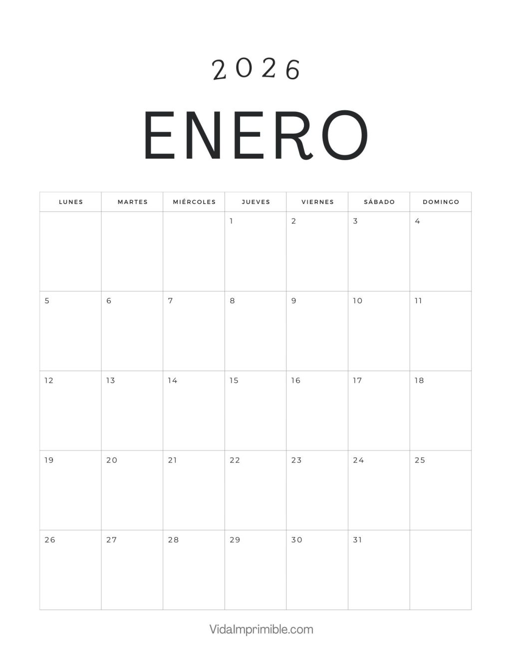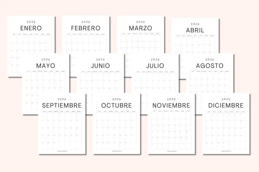 Ya no tienes excusa para mantenerte desorganizado. Descarga tus calendarios PDF imprimibles de diseño simple y vertical ahora mismo y comienza a planificar un año lleno de éxitos.