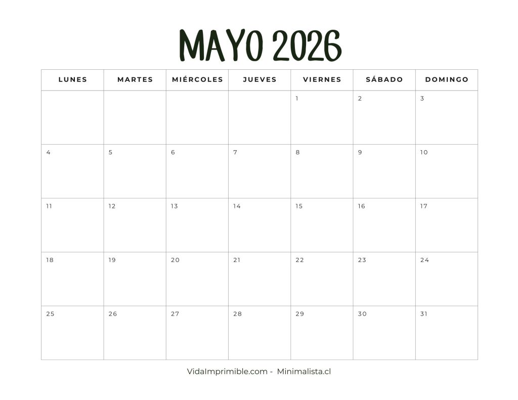 Hace semanas que estoy trabajando en los Calendarios Imprimibles 2026. Como es tradición en esta página, el primer Calendario que subo es el con diseño Minimalista con inicio de semana en día lunes! Sé que lo estabas esperando.